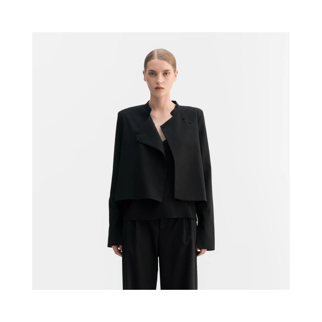 Chani ullkavaj är gjord av en ullblandning och har dolda tryckknappar vid sprundet fram och axelvaddarna. Hela jackan är helfodrad och ärmarna är snedskurna med en slits längst ner på ärmen.