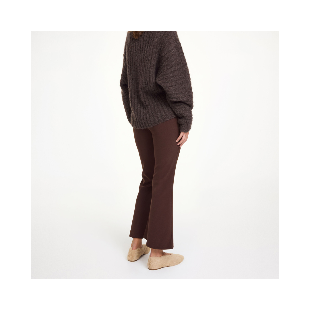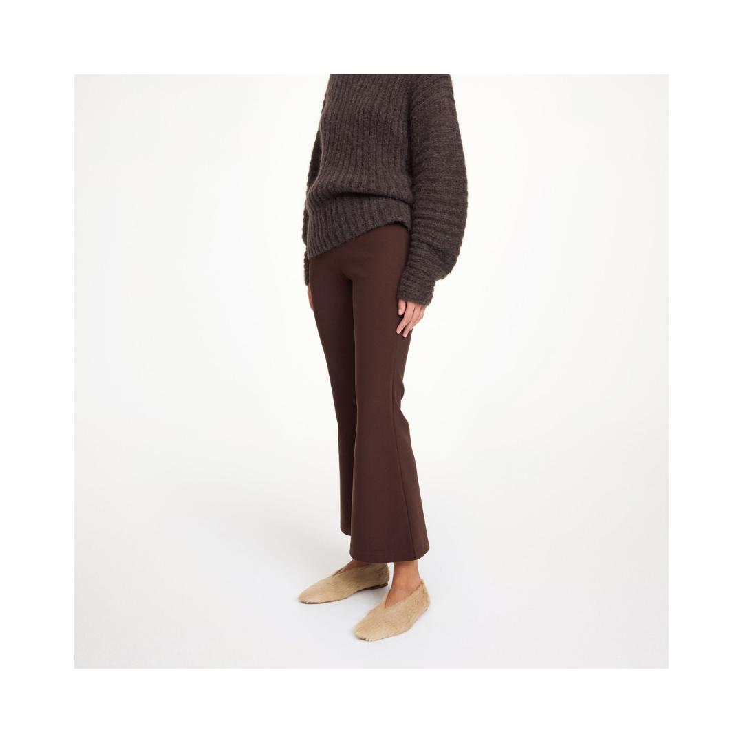 By Malene Birger Vilanna-byxor tillverkade i en lyxig materialblandning. Designen har en bekväm medelhög midja, utsvängd silhuett och korta ben. Bär dem hela veckan med en överdimensionerad kavaj och stickat plagg.