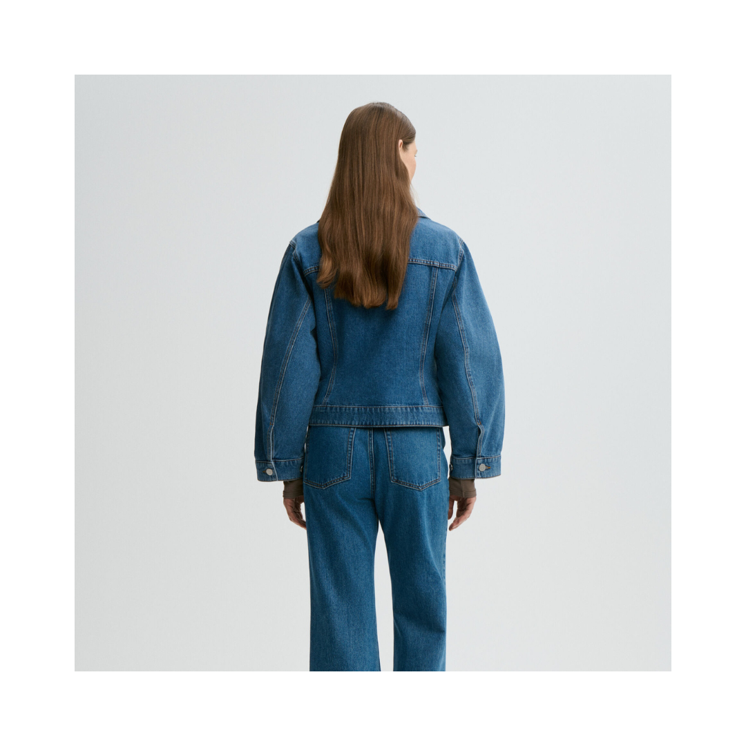 Villies jeansjacka är gjord för avslappnat vardagsbruk. Tillverkad av ekologisk bomull och skuren med en midja för en fräsch passform. Detaljer inkluderar rundad krage, knappstängning, fram- och sidfickor samt ett broderat monogram. En klassiker som håller länge.