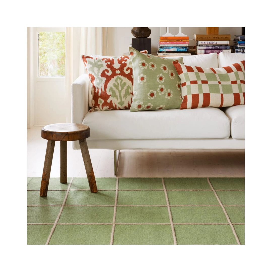 Kuddfodralet Amina har ett handtryckt blommönster i 100 % linne i storlek 50 x 50 cm. Färgkombinationen turkosblå och orange ger liv till rummet och passar lika bra i en modern som i en bohemisk miljö. Enfärgad baksida .