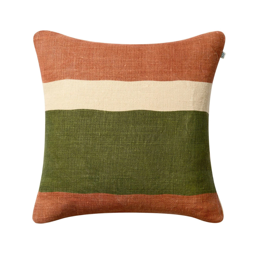 Manali är ett kuddfodral i linne med ett handtryckt geometriskt mönster som skapar liv och struktur. Enfärgad baksida och finns i flera nyanser.