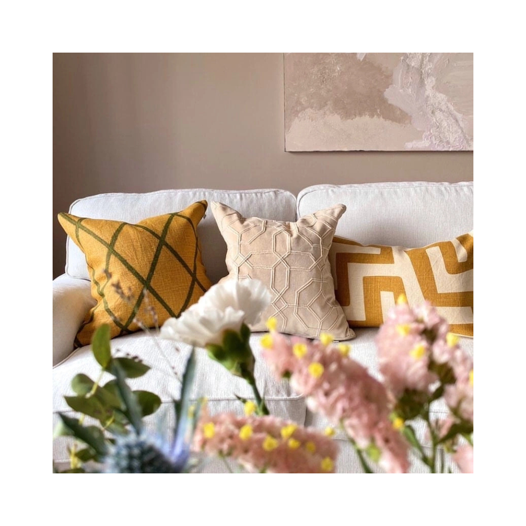 Nagra är ett mönstrat kuddfodral i linne 40 x 60 cm. Våra mönster trycks för hand. Tryckmetoden kallas screentryck där färgen trycks med hjälp av en schablon på linnetyget som sedan får torka i solen. Tryckprocessen kräver nästan inget vatten och bygger på traditionella indiska hantverksmetoder.  Kuddfodralet har en enfärgad baksida.