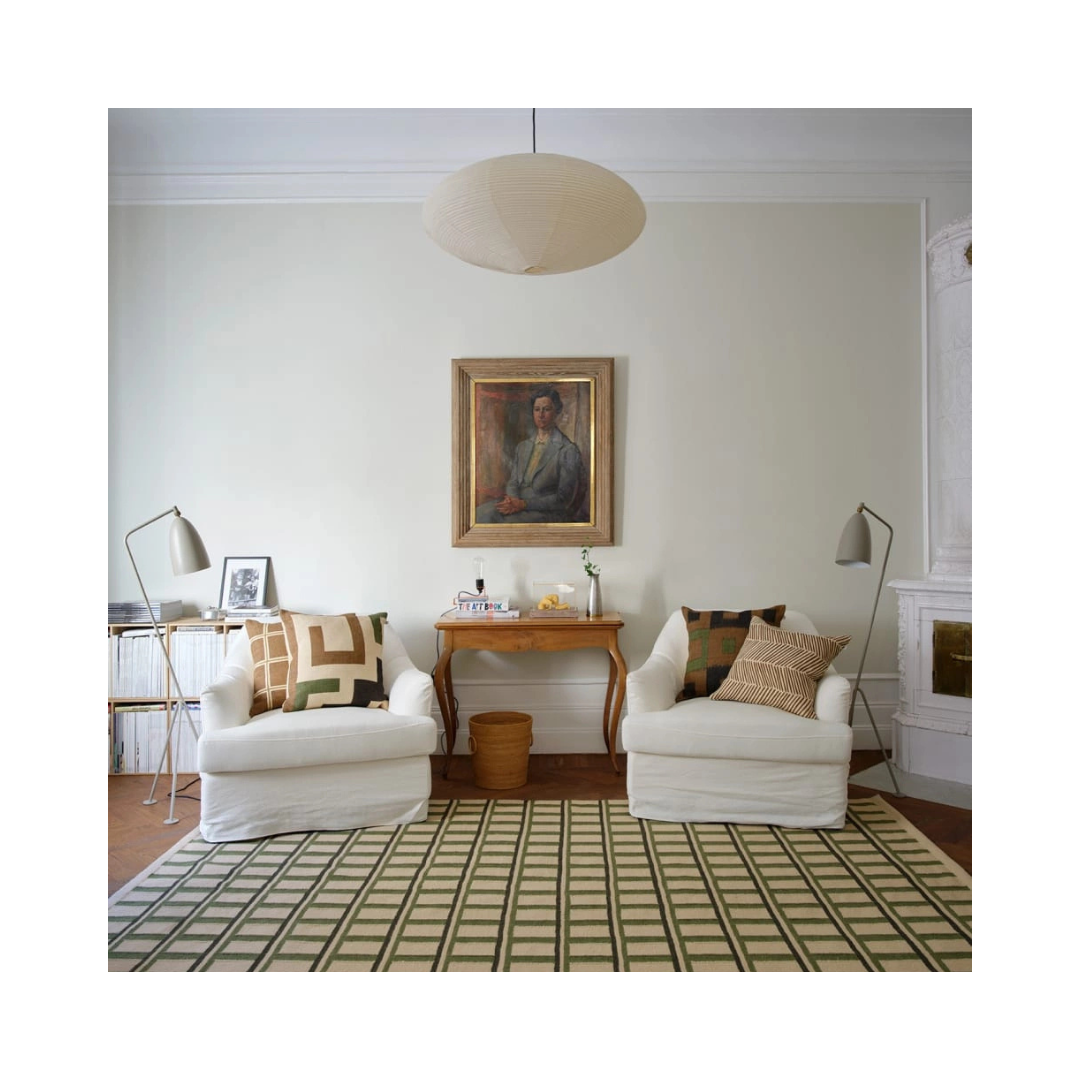 Kuddfodralet Vicky har ett handtryckt geometriskt mönster i 100 % lin som ger rummet en personlig karaktär. Finns i två färgställningar. Enfärgad baksida.