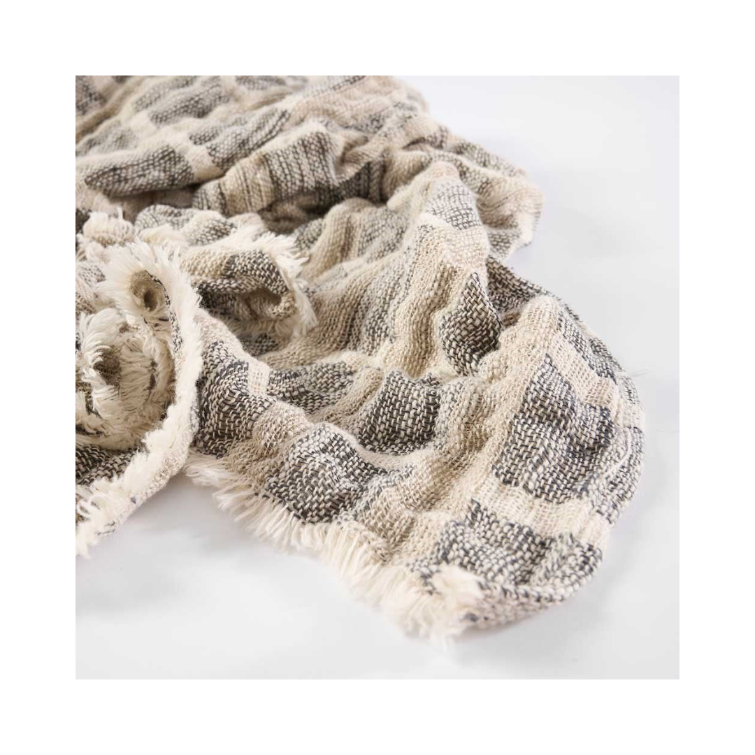 Inspirerad av Greklands kullerstenar förkroppsligar vår nya linnepläd Petra en diskret elegans. Den hyllar den konstnärliga anda med sin lyxiga väv och korsmönster, och de iögonfallande elementen gör detta till ett underbart fristående plagg. Lika vackert i kombination med den matchande kudden och andra plagg i vår kollektion.