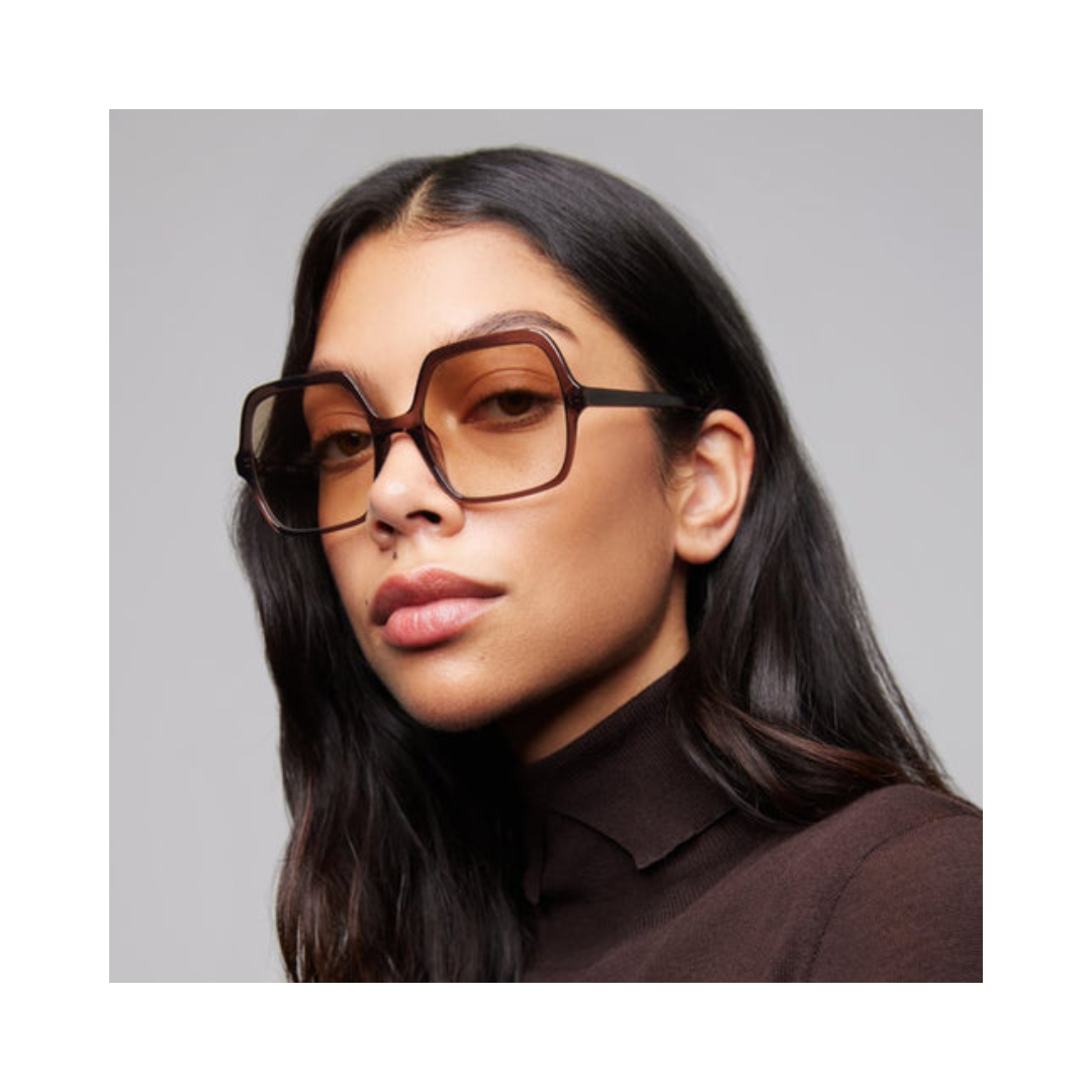 Natalie, en fyrkantig båge i begränsad upplaga, ståtar med en överdimensionerad silhuett. Dess design är inspirerad av retroestetik. Detta skapar ett coolt, klassiskt uttryck för vilken look som helst. Tonadee glas ger 70 % UV-skydd.