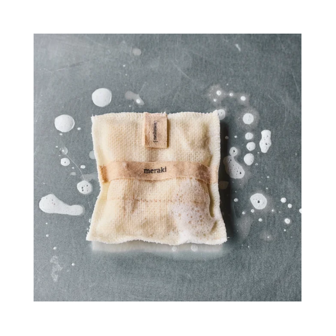 Meraki Badvante – Lemongrass är en fantastisk badvante som skonsamt exfolierar huden medan du tvättar dig. Det betyder att du varsamt avlägsnar döda hudceller från din kropp, så att din hud kommer att kännas silkeslen, len och ren efteråt. Badvanten är fylld med mild, handgjord tvål som skummar upp när du tvättar kroppen och har en fräsch doft av citrongräs. Ett enkelt och snabbt sätt att få in spaupplevelsen i ditt badrum, även om du har en hektisk och stressig vardag.