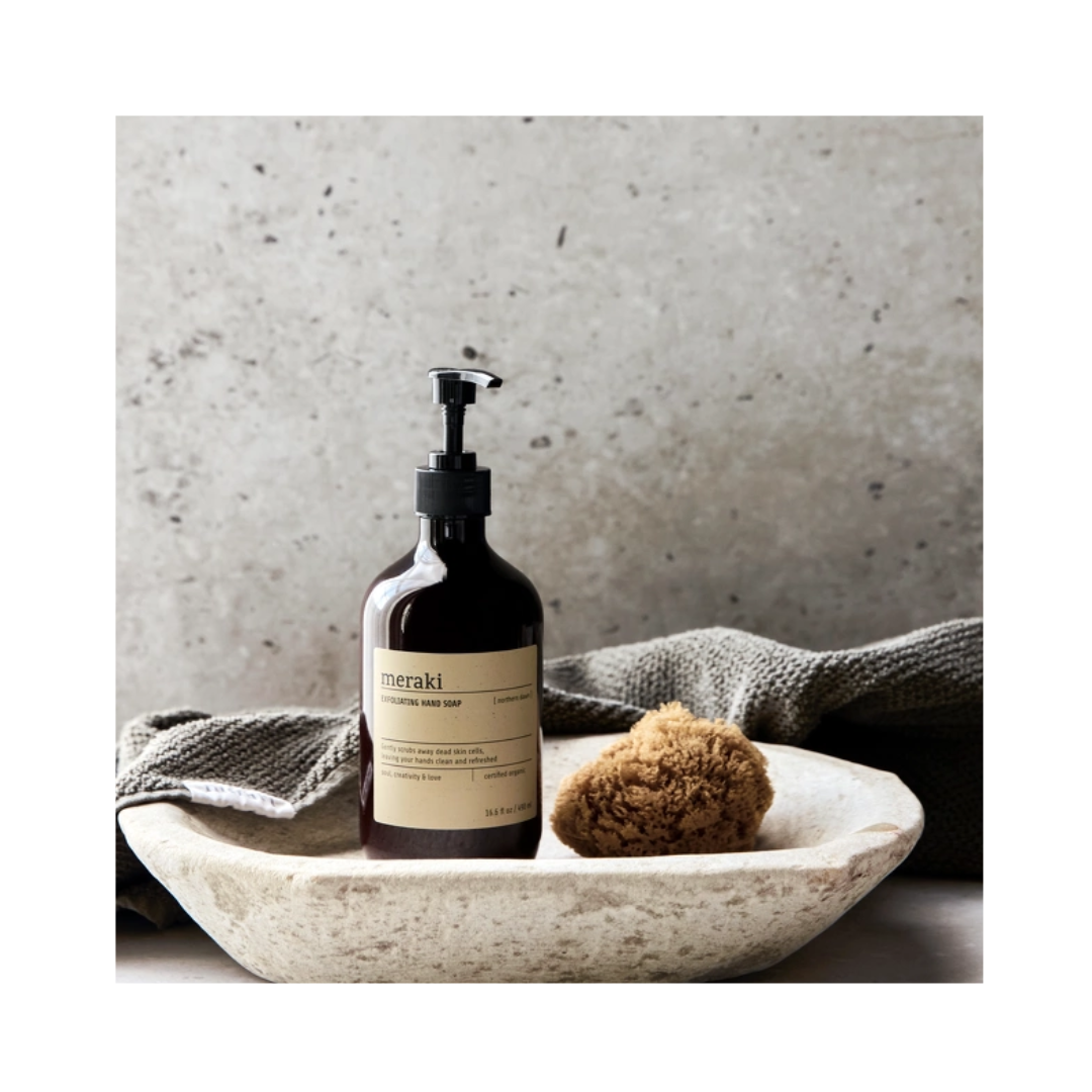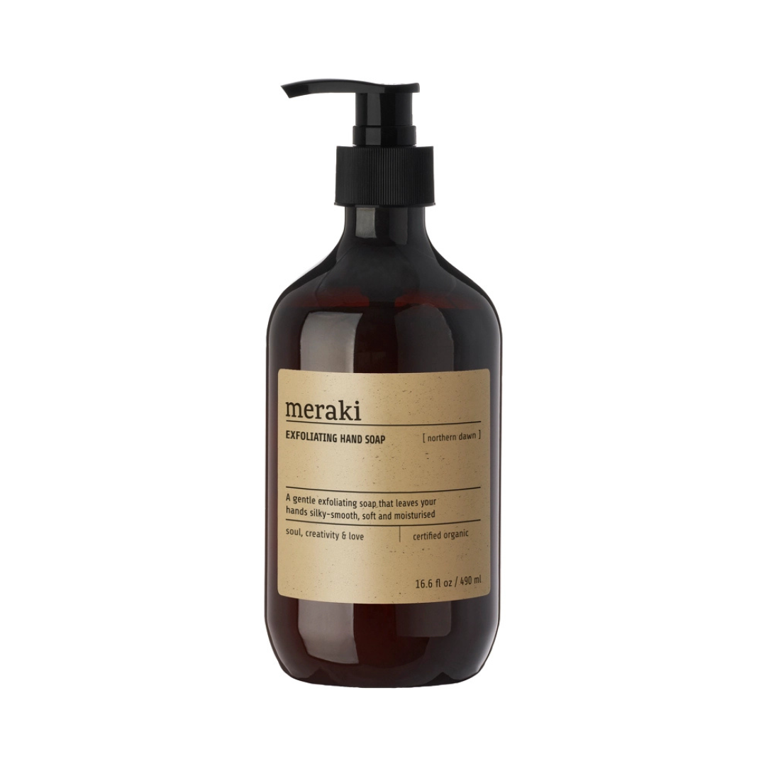 Meraki Exfoliating Hand Soap – Northern Dawn är en ekologiskt certifierad och exfolierande handtvål som ger dig mjukare och lenare händer. Den är lämplig för daglig användning och för alla hudtyper. Denna flytande handtvål är berikad med fina aprikosgranulat, som ger en lätt exfoliering och tar bort döda hudceller medan du tvättar händerna.