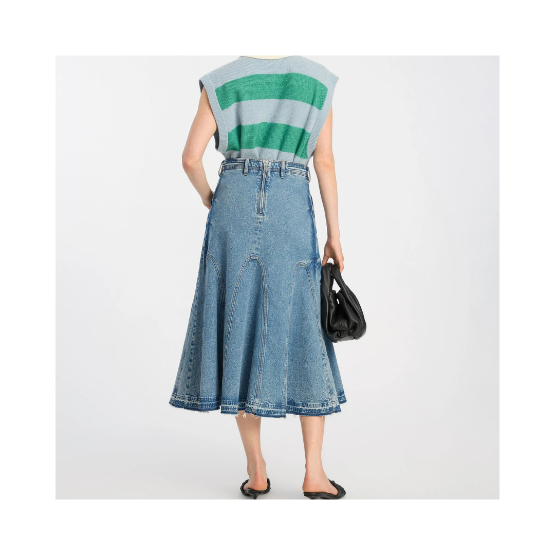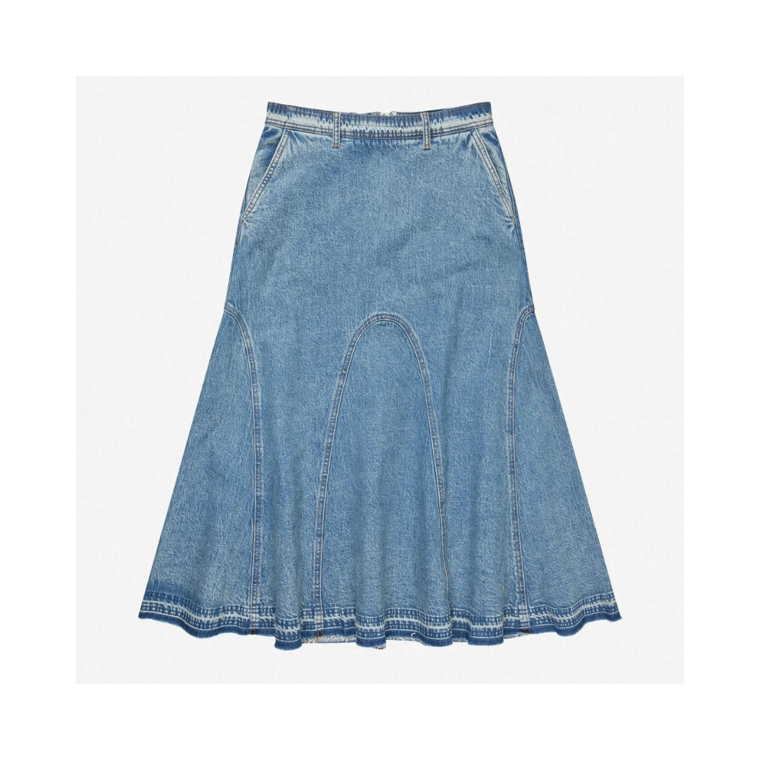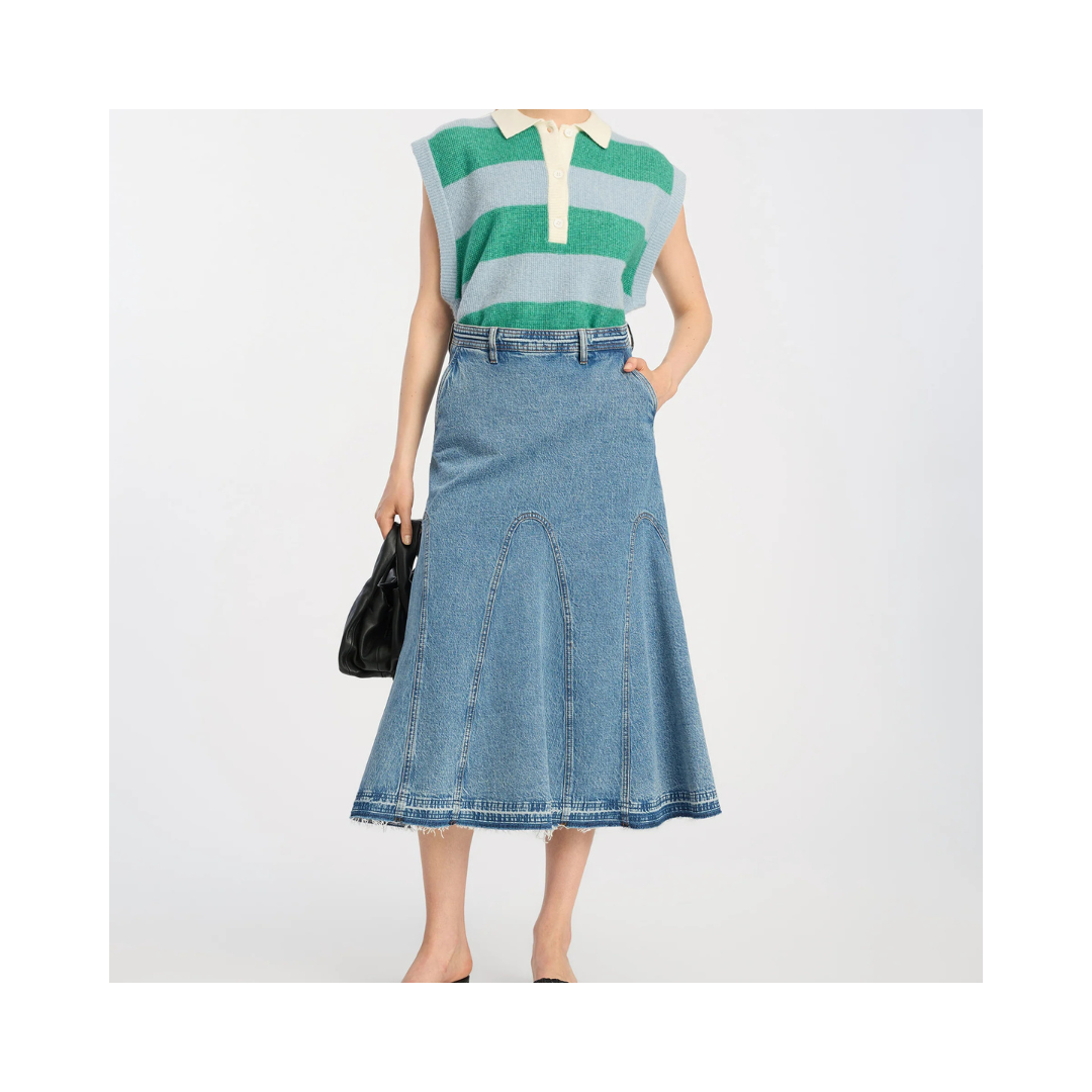 BRAYLIN-kjolen är tillverkad i denim och har en smickrande midilängd med utsvängd fåll. Designen med strukturerade sömmar och en vanlig silhuett erbjuder plagget tidlös mångsidighet.