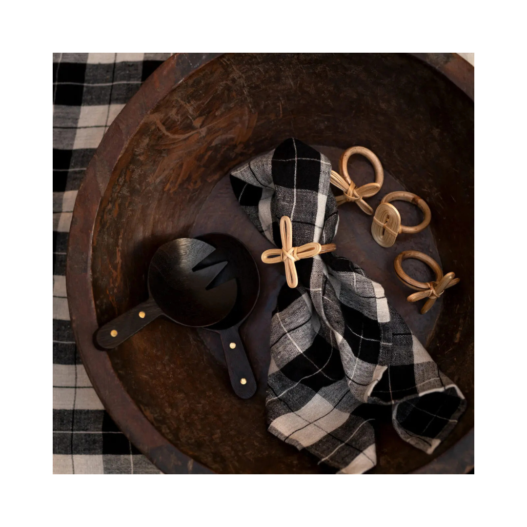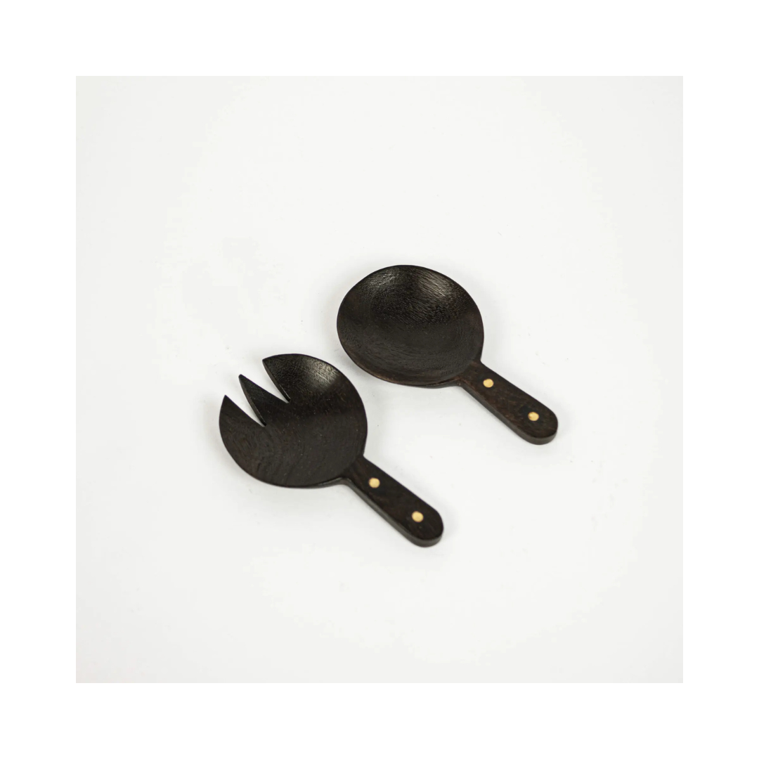 Salladsbestickens yta är bränd vilket ger dom färg, liv och karaktär. För att bevara dess skönhet och livslängd rekommenderas handdisk.