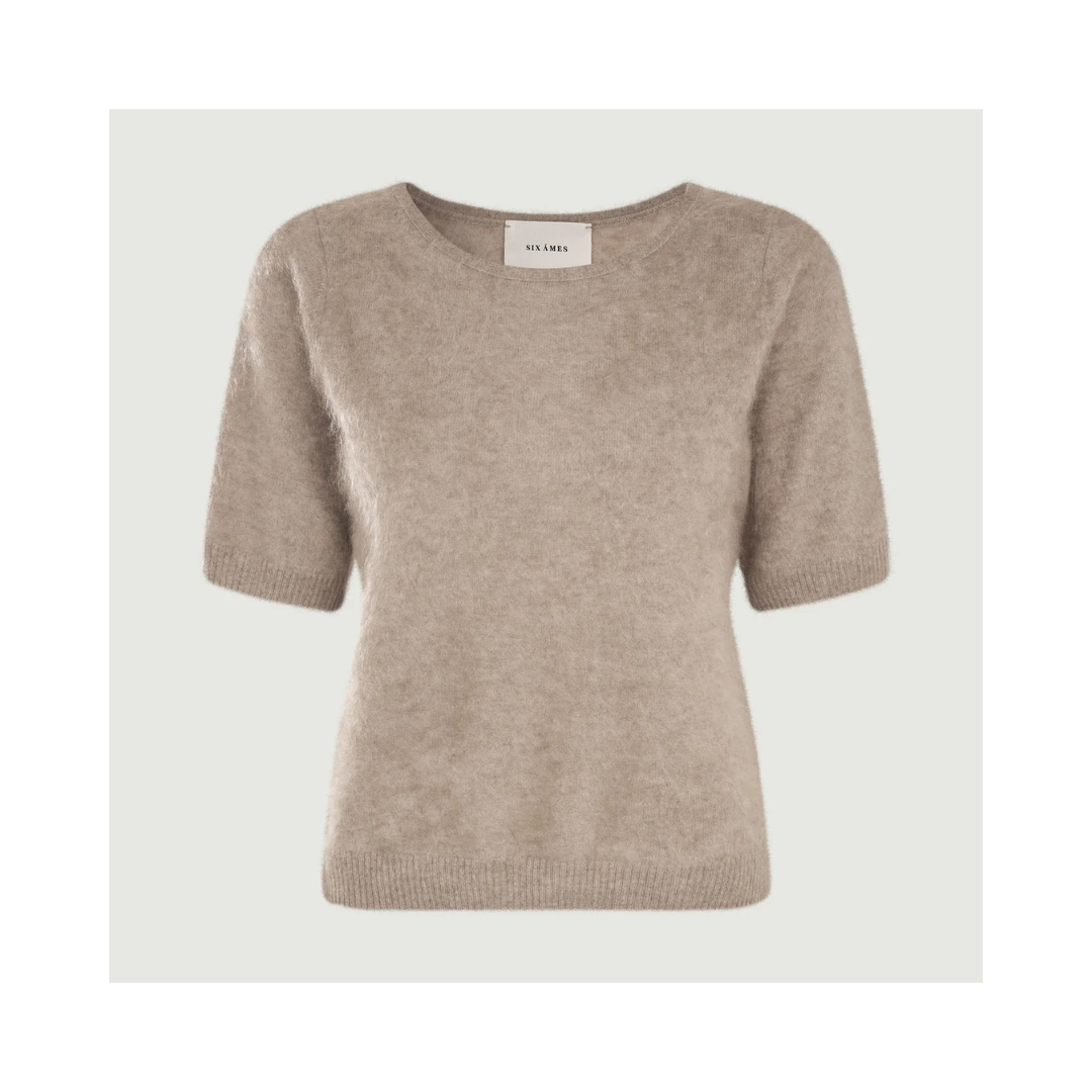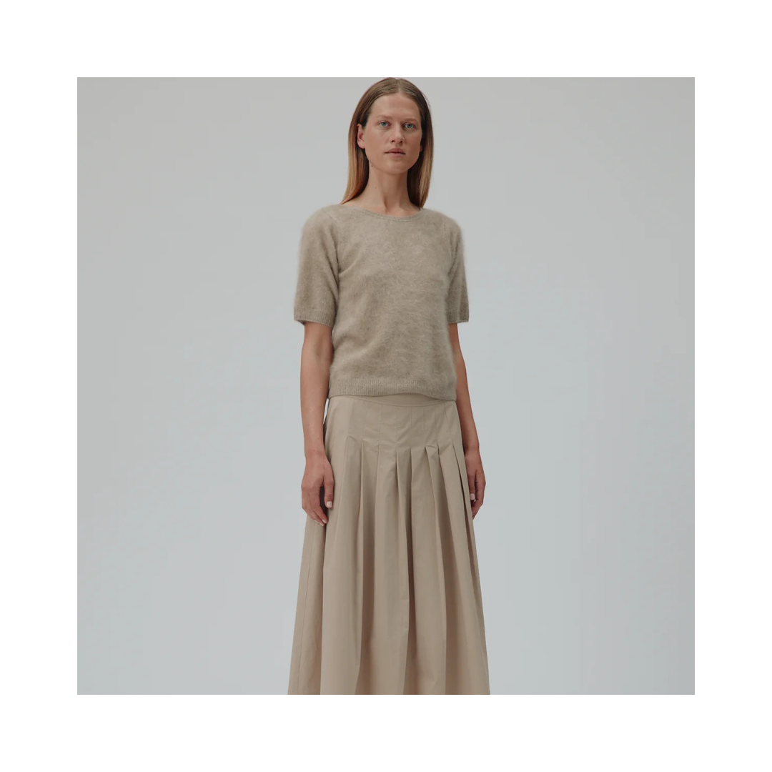 Rachel är en t-shirt-liknande tröja i 100 % lyxig borstad kashmirull. Den har en vid halsringning, vida ärmar och en avslappnad passform, vilket skapar en elegant och förfinad silhuett.