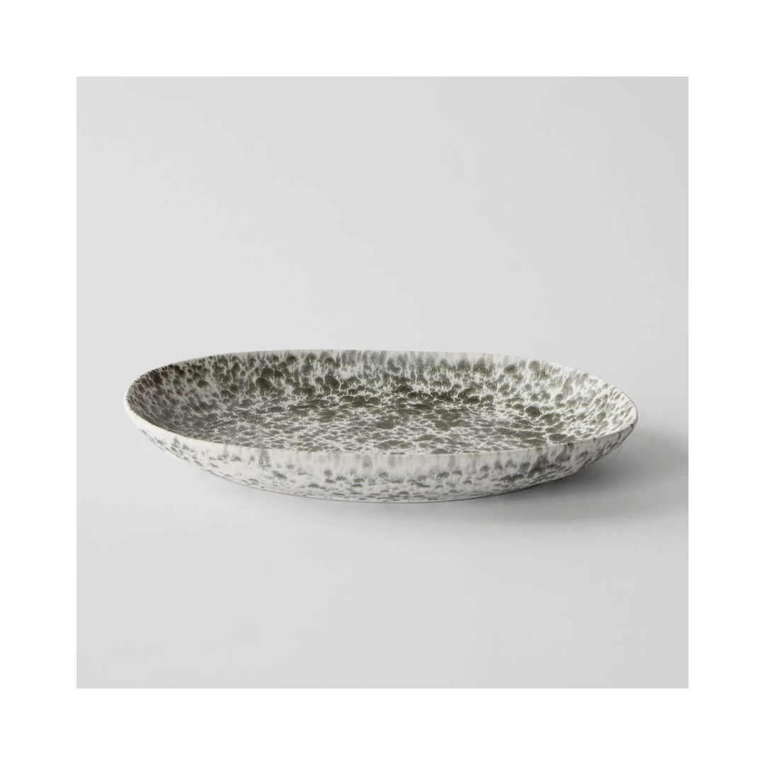 Tidlöst serveringsfat i stengods med stänkmönster. Uppläggningsfatet är ett klassiskt och mångsidigt fat som passar perfekt för alla tillfällen. Serveringsfatet är tillverkat för hand och har en vacker glasyr med en matt finish. Detta gör att varje fat är unikt när det gäller färg, form och känsla. Färger kan därför skifta från fat till fat men som kommer göra din dukning levande och unik. Rivoli är lika vacker på egen hand som att blanda upp och duka med andra stengodsserier